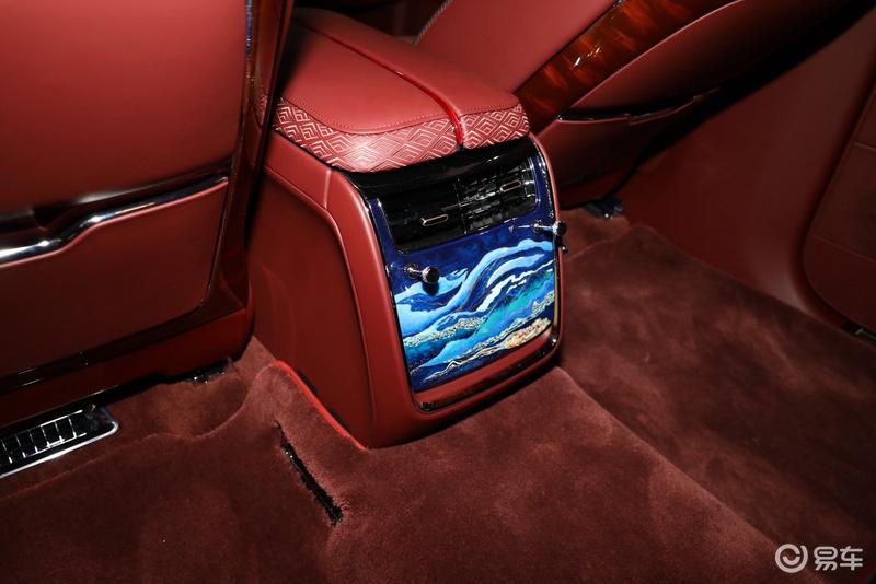 车展上展出的为国礼“丹霞”主题定制版车型,其设计灵感源自广东韶关仁化丹霞山的丹霞地貌,该地区极具特征性的红色砂砾岩地貌构成了绚丽的红色山体,犹如自天际飘落的霞光。此外,该车的座舱内四门门饰板上还加入了漆画点缀,氛围感直接拉满。