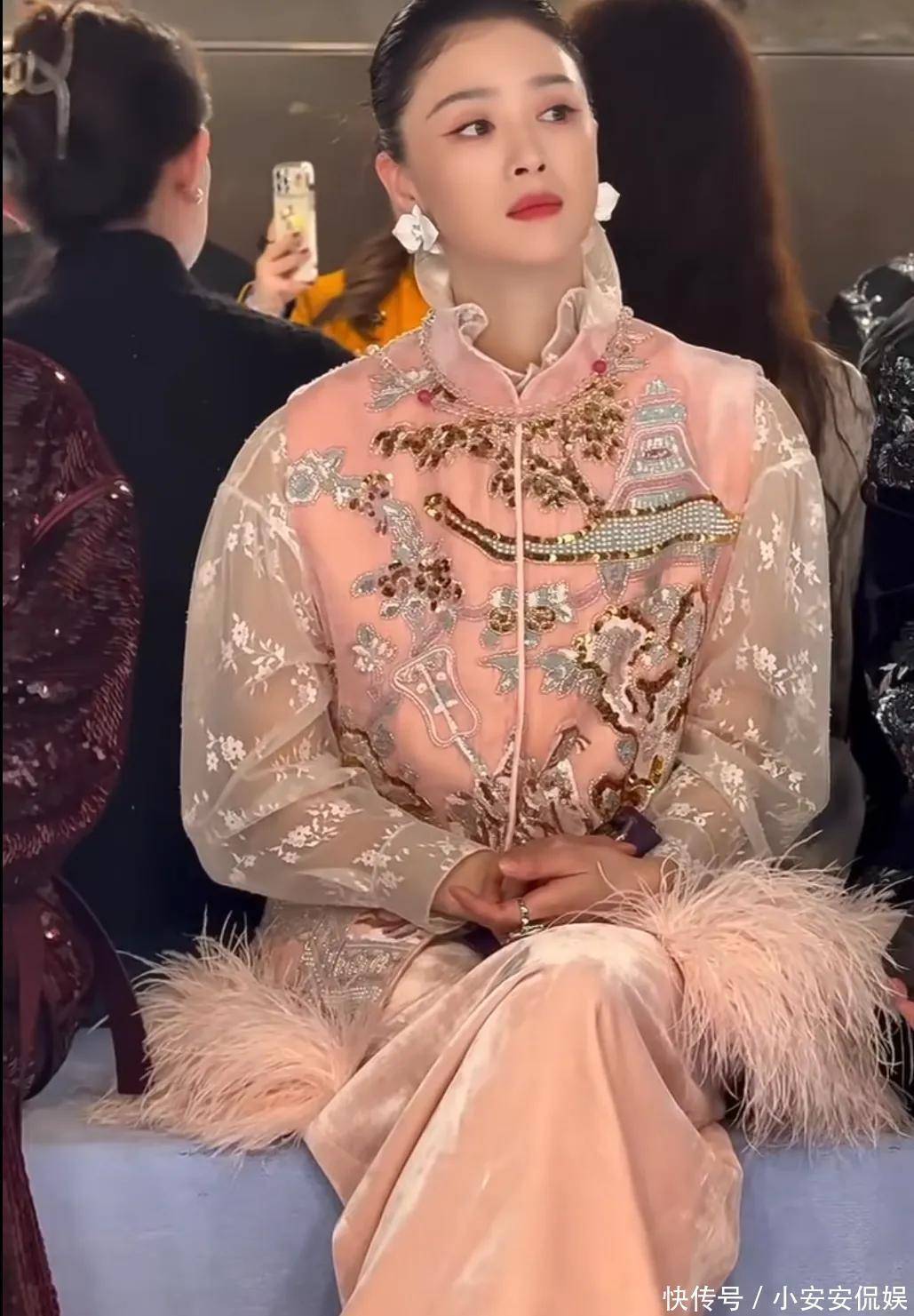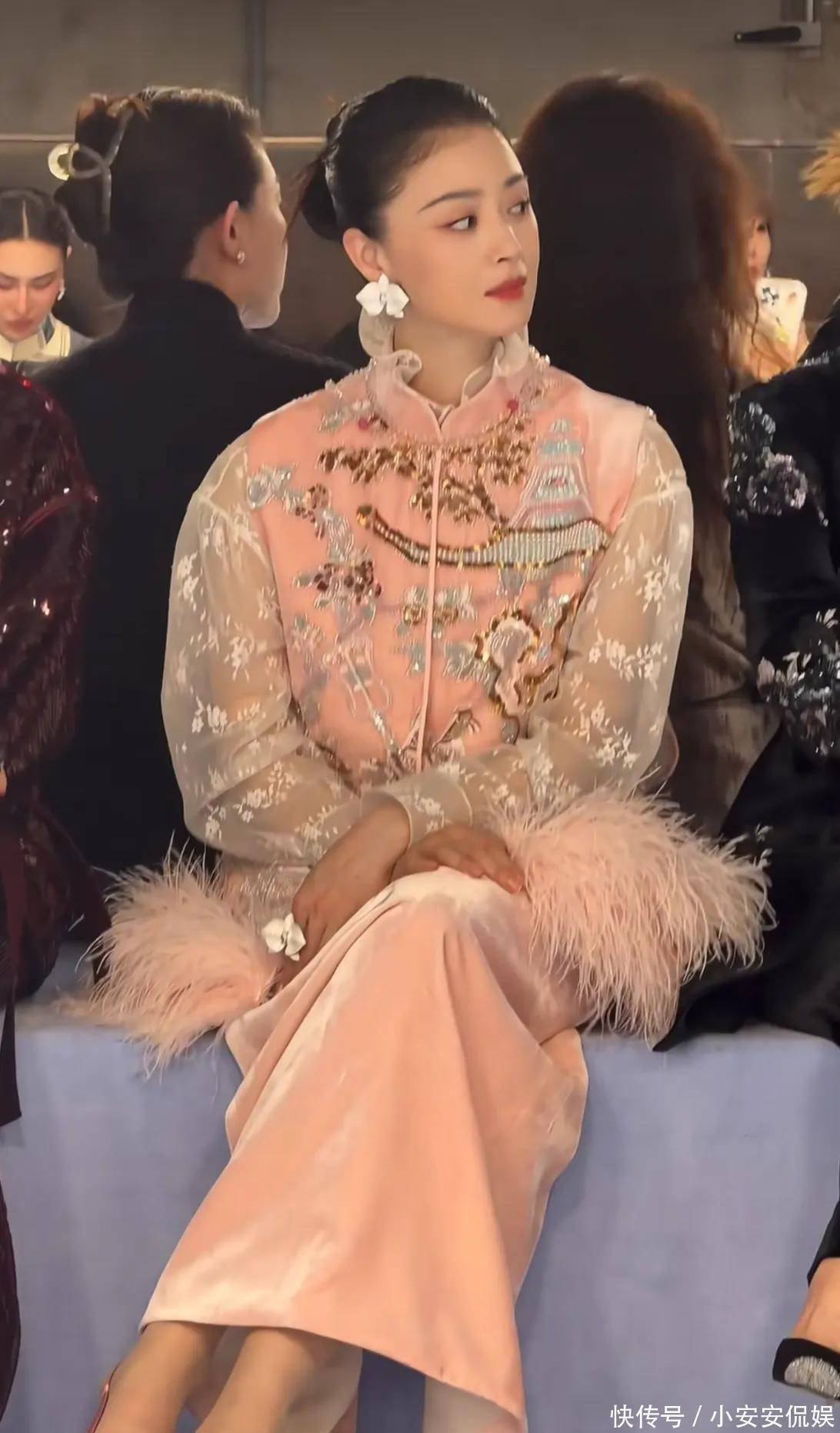 她偏不随波逐流,上海时尚大秀这一夜,她穿着粉色的新中式礼服,刺绣流转间尽是端庄,全身未见多余暴露,却凭强大气场惊艳全场。