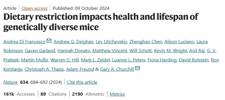 再来看看去年发表在国际医学期刊《Nature》上的一项研究,研究称适当热量限制可显著延长寿命。该研究将960只身体健康的小鼠分成5组,饮食模式为无限制、每周禁食1天/2天、热量减少20%以及40%,并对小鼠进行了终生随访。