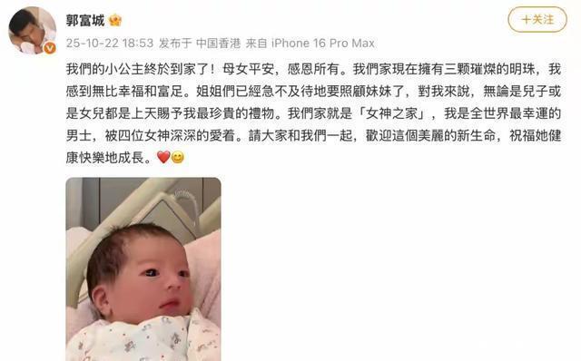 更有趣的是姐姐们的反应。6岁的Chantelle和4岁的Charlotte被拍到拎着洋娃娃去医院,镜头里没哭没闹,只想给妹妹"递蝴蝶结"。从小在粉色婴儿房长大,她们已默认"家里男女比例1:4"是常态。等老三学会走路,场景可以想象:三个小喇叭对着郭天王一起喊"爸爸帮我编辫子",那画面,硬汉也得秒变发廊小哥。