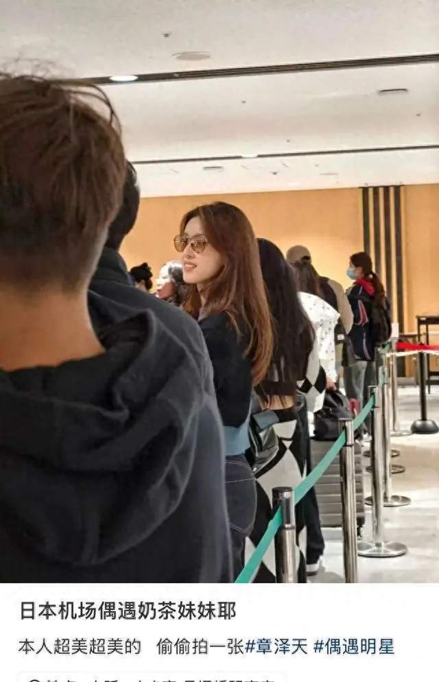 有一位日本的网友在个人社交平台上晒出,在机场拍摄到章泽天的画面。