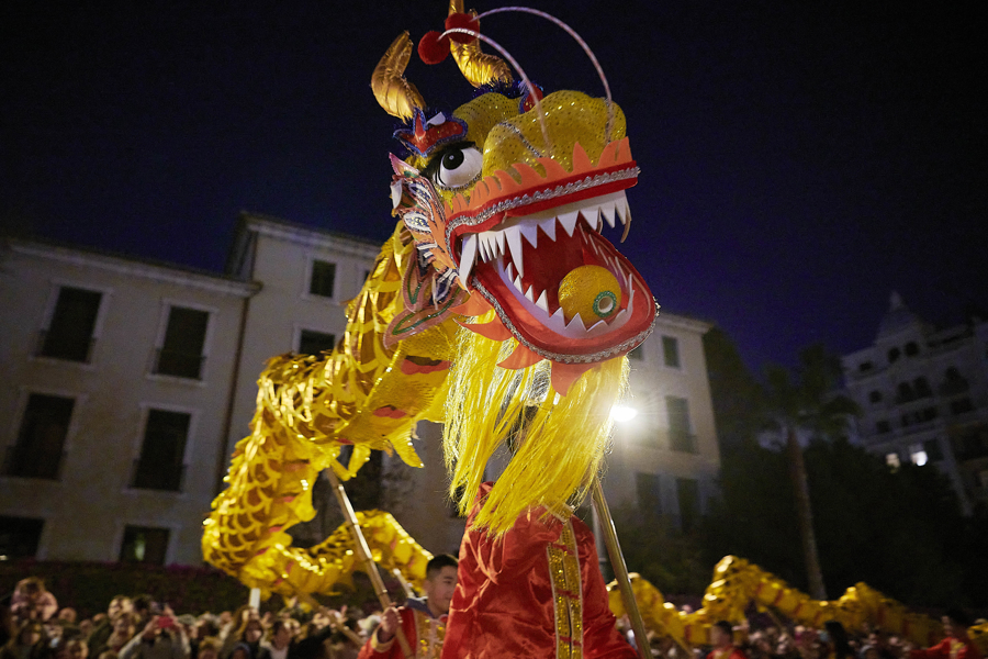 2023年1月21日,舞龙队在西班牙巴伦西亚春节游行上表演。 新华社图