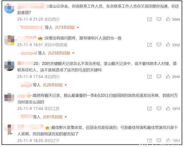 然后到了东京电影节,有了白百何釜山的操作,估计制片人觉得,她没有个人奖的话,就不会陪剧组出席活动了,毕竟釜山是电影得奖,她都不愿意出现,那东京属于导演和演员是个人奖,她大概率也不会出席了,所以按照白百何的要求,跟她的经纪团队沟通,通知她可以回去了。结果没一会儿,白百何自己发了一条“还能这样操作”的微博,开始内涵剧组孤立她,不跟她本人沟通。