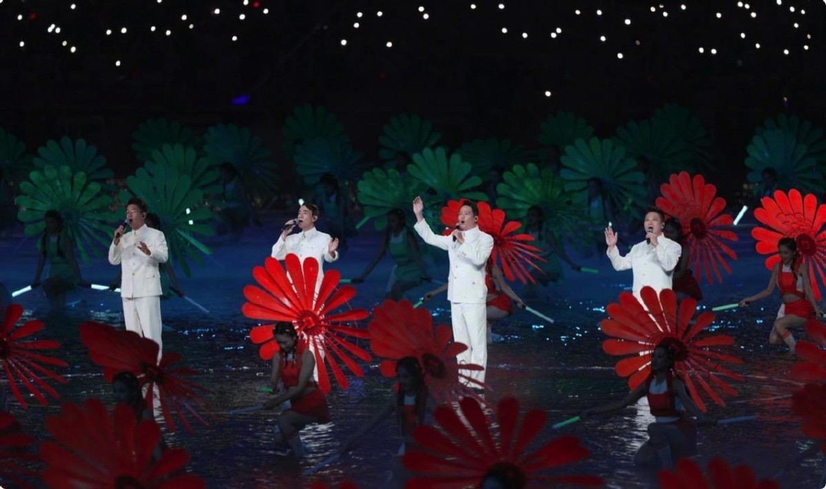 当聚光灯亮起,他身着传统中式唐装缓步登台,低沉而富有磁性的嗓音缓缓唱出: “五千年的风和雨啊藏了多少梦” 刹那间,全场沸腾,情感奔涌,仿佛历史长河在歌声中奔腾而过。